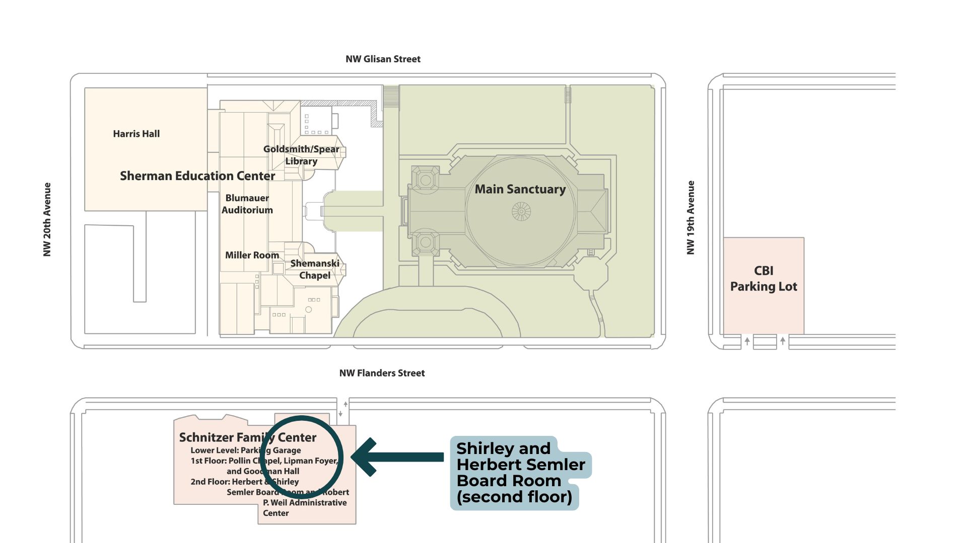 The Shirley and Herbert Semler Board Room is located on the second floor (accessible via either stairs or elevator) of the Schnitzer Family Center. The space is wholly accessible via wheelchair.