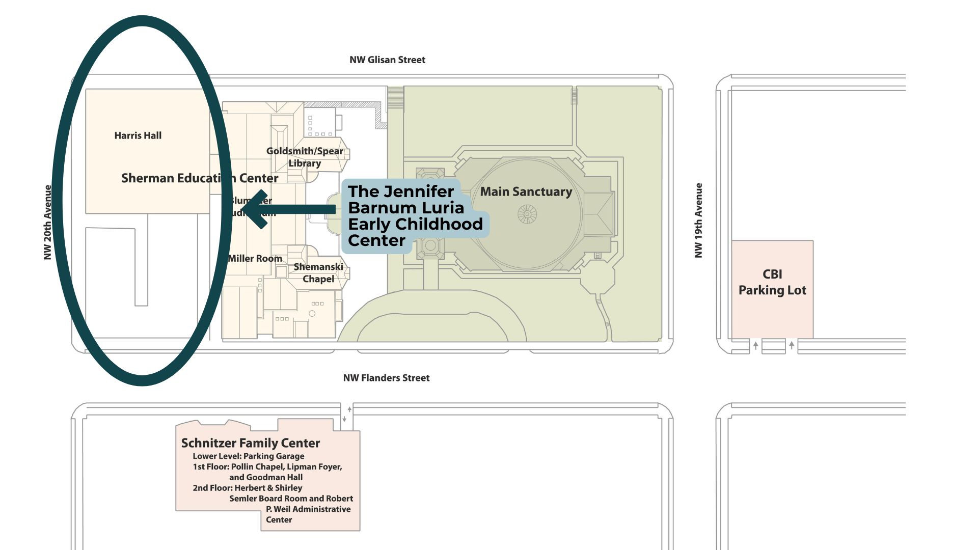 The Jennifer Barnum Luria Early Childhood Center is located on Congregation Beth Israel’s historic campus; ring the intercom at that location and a staff person will let you in.